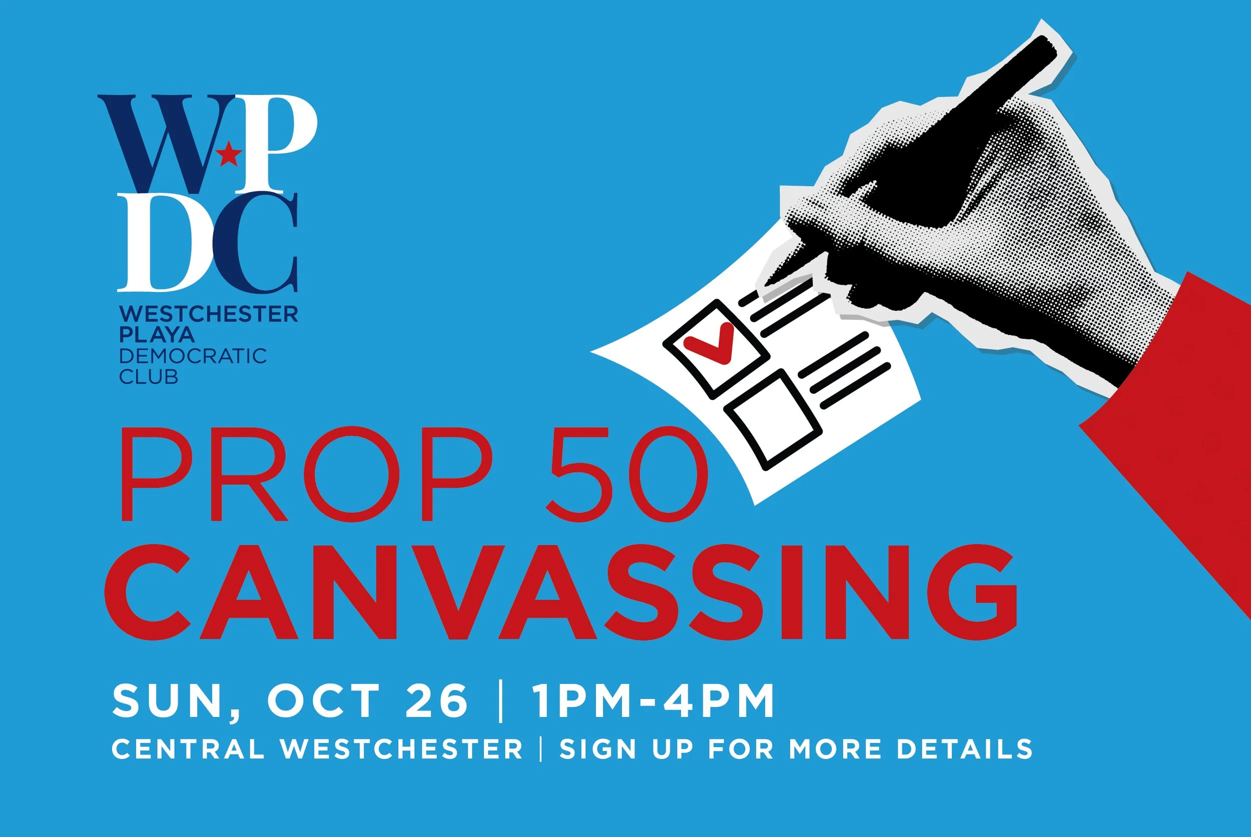 Come knock doors with Assemblymember Tina McKinnor, the Westchester-Playa Democratic Club, Westchester Playa Indivisible and neighbors from all over Assembly District 61 and help stop the Trump / MAGA agenda. Trump is trying to rig the midterm elections and passing Prop 50 is the best chance we have of stopping him and taking back Congress next year.