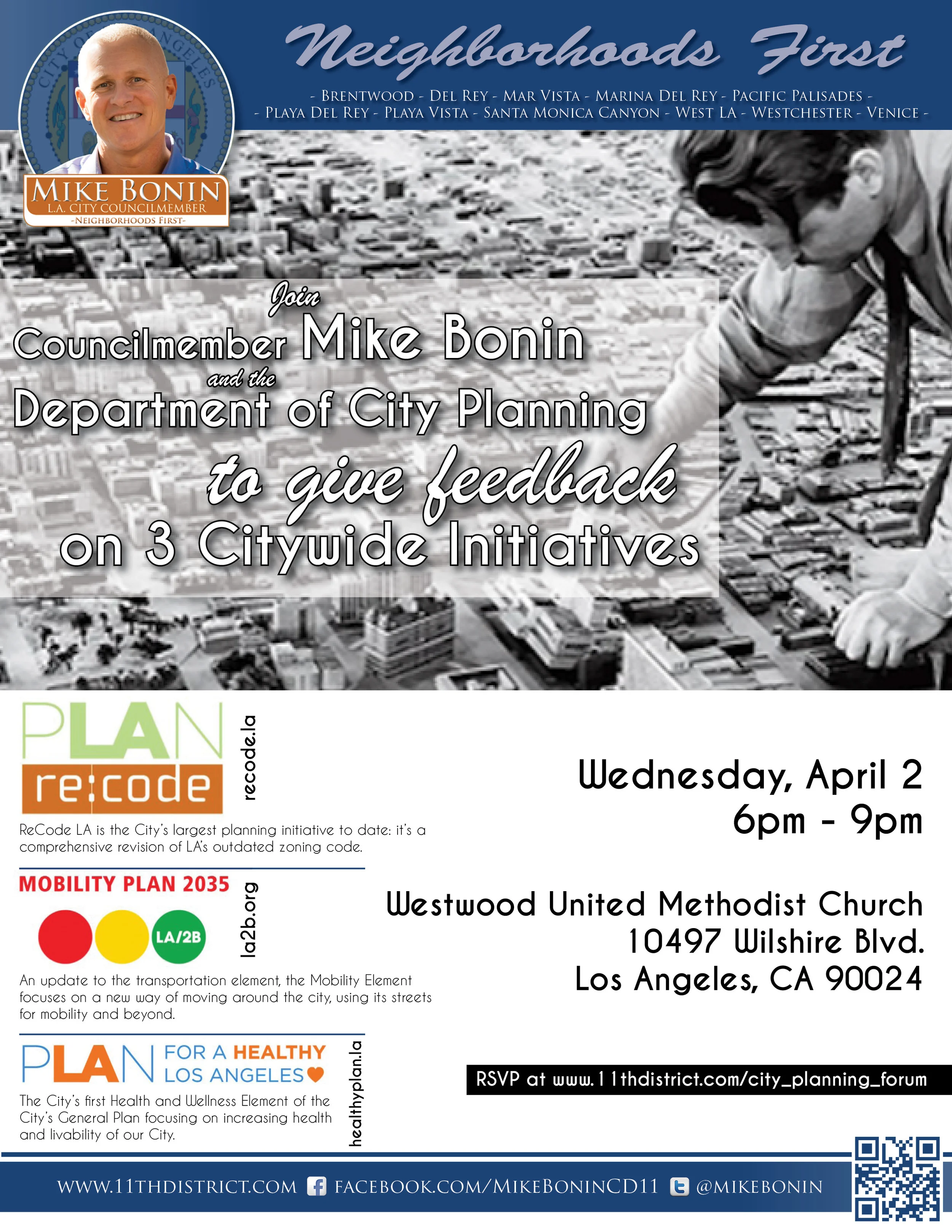 Join Councilmember Mike Bonin and the Department of City Planning to provide feedback on three important Citywide planning initiatives.